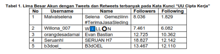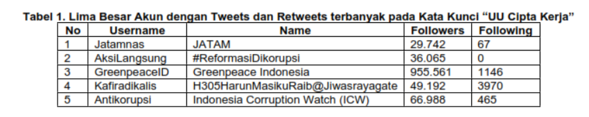 Penelitian ini bertujuan untuk mengeksplorasi aktor dan narasi di balik pro kontra UU Cipta Kerja. Dengan bantuan perangkat lunak NVivo 12 plus, penelitian ini mengambil sampel tweets dan retweets dari Twitter sebanyak 16.759 dan 17.123 untuk masing-masing kata kunci “UU Cipta Kerja” dan “#MosiTidakPercaya”. Penelitian ini menemukan bahwa aktor dan narasi di balik UU Cipta Kerja dipenuhi oleh para pendengung (buzzer) baik dari kubu pro dan kontra, serta meminggirkan narasi para aktivis yang berusaha mengadvokasikan kebijakan ini melalui media sosial.