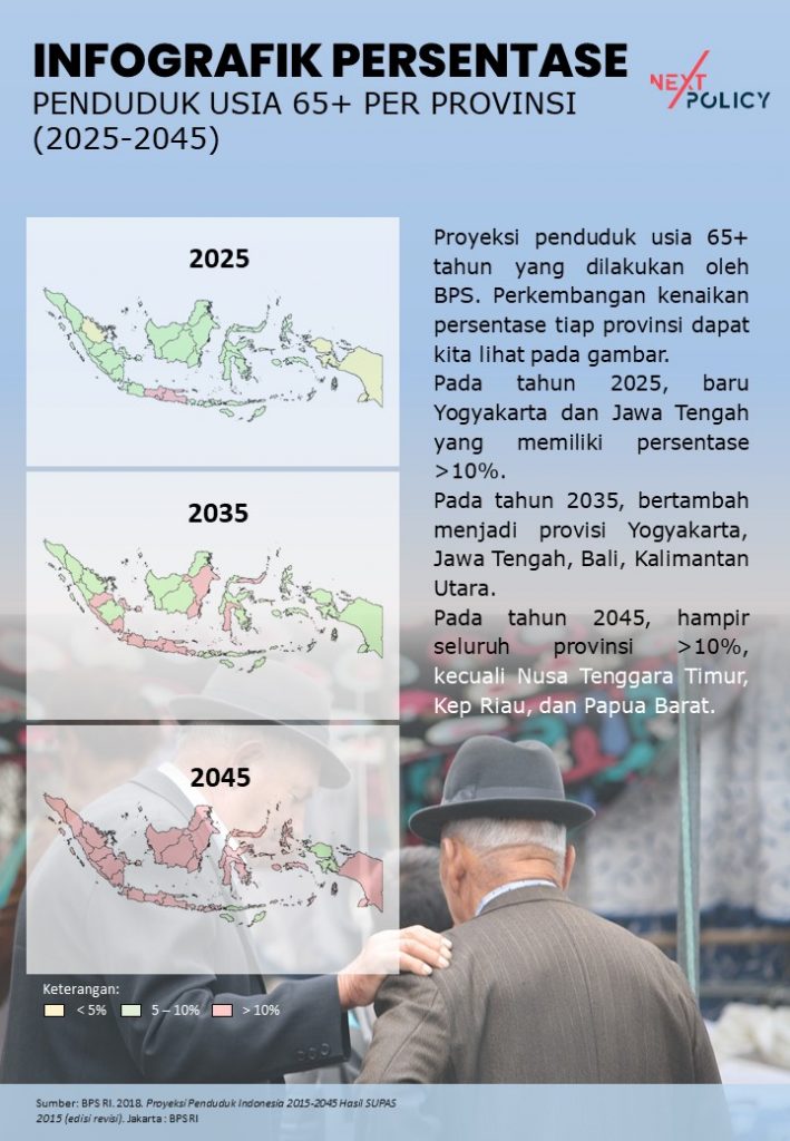 Indikator penduduk usia tua ini yang sering digunakan untuk menganalisa population ageing yakni berupa persentase penduduk usia tua. Sedangkan menurut BPS (2015) yaitu ketika persentase penduduk usia 60 tahun keatas mencapai 10 persen. Sehingga penelitian ini didasarkan pada persentase penduduk usiat tua 65+ dengan persentase mencapai 10 persen yang selanjutnya dinyatakan sebagai population ageing.
